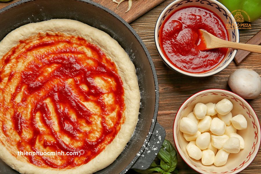 Sốt pizza giống như phần nền tạo vị cho cả chiếc bánh. Bạn có thể cho topping đơn giản thôi, nhưng nếu sốt thơm và sệt vừa thì pizza vẫn thơm ngon như ngoài cửa hàng.